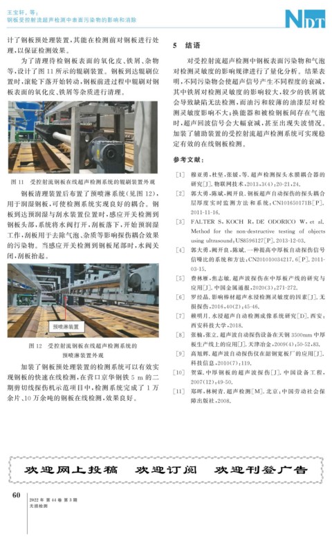 图 12 受控射流钢板在线超声检测系统的 板生产线上的应用[ J ] . 天津冶金, 2009 ( 4 ): 50-52 , 83.