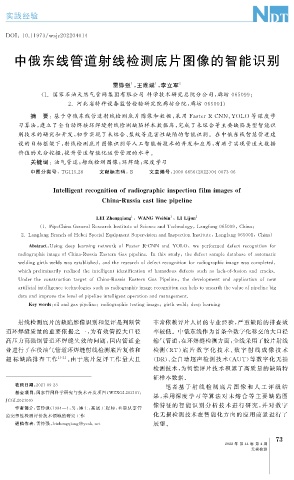 Ke ywords : oilandg asp i p eline ; radio g ra p hictestin g ima g e ; g irthweld ; dee p learnin g