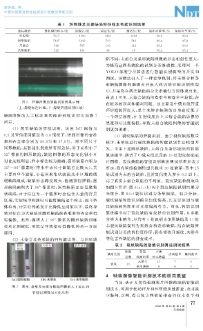 对比度较明显, 样本标注较为精确; 圆形缺陷面积为 片图像。裂纹缺陷的智能识别算法测试结果如表 2