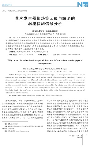 关键词:传热管; 涡流检测; 凹痕; 缺陷; 复合信号