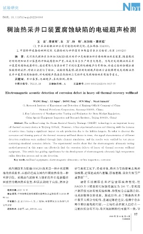 蚀缺陷的试件, 对该方法进行了验证。试验结果表明, 提出的电磁超声检测方法能够有效发现稠油热