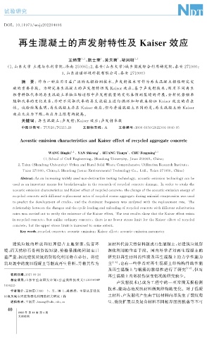 Ke ywords : rec y cledconcrete ; acousticemission ; Kaisereffect ; acousticemissionp arameter