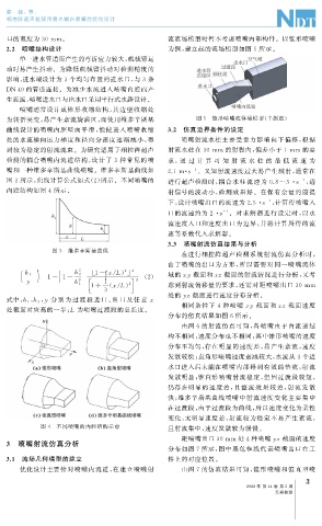 检测的耦合喷嘴内流道结构, 设计了 3 种常见的喷 求, 通 过 计 算 可 知 射 流 水 柱 的 最 低 流 速 为