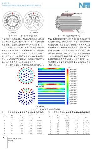 100mm , 匝数为 1500 , 激励电流为 1A 。 不同排 布 方 式 钢 丝 束 的 参 数 及 仿 真 结 果 如 表 1