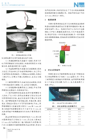 焊缝两侧的入射面宽度分别为 3 mm 和 5 mm , 而 表 1 对比试样电火花刻槽尺寸 mm