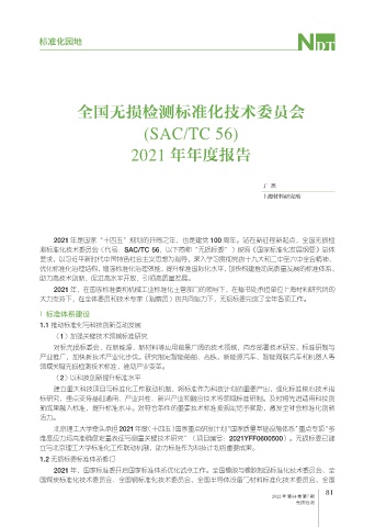 测标准化技术委员会(代号:SAC/TC 56,以下简称“无损标委”)按照《国家标准化发展纲要》总体