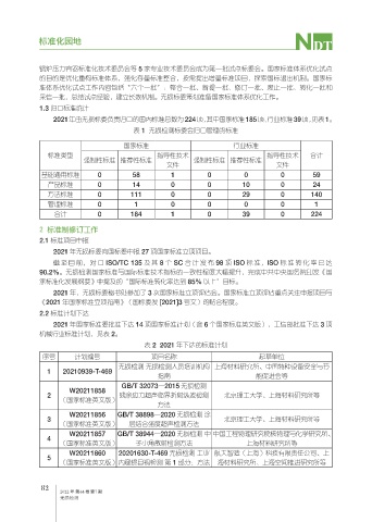 2021年由无损标委负责归口的国内标准总数为224项,其中国家标准185项、行业标准39项,见表1。