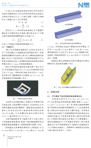 行仿真试验, 对比检测出的电信号, 以获得同心方形 0.2mm×1.0mm ( 长 × 宽 × 深) 的纵向缺陷榫槽模