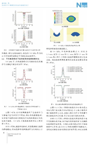 压最大幅值。 500kHz下 缺 陷 的 涡 流 密 度 云 图 如 压变化微小的区域, 该区域内的涡流特征与无缺陷