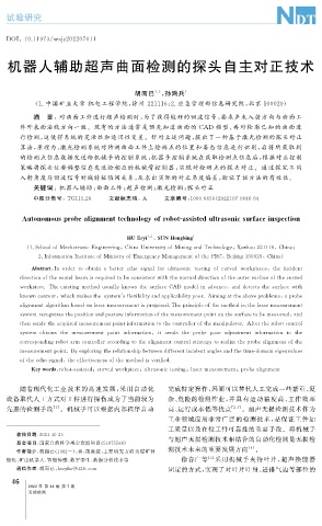 Ke ywords : robot-assisted ; curvedwork p iece ; ultrasonictestin g ; lasermeasurement ; p robeali g nment