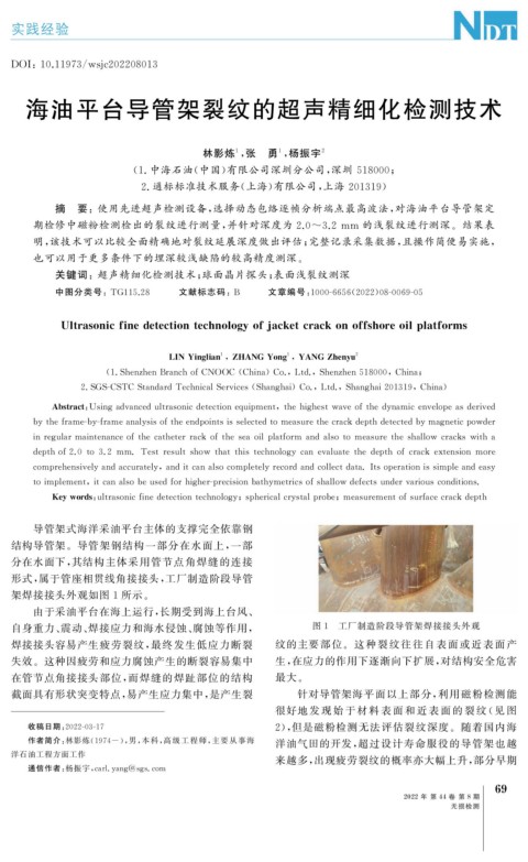 海油平台导管架裂纹的超声精细化检测技术