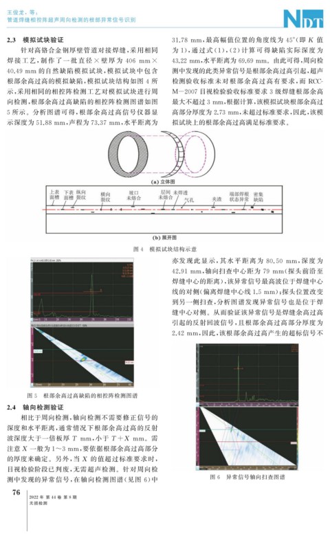 40.49mm 的自然缺陷模拟试块, 模拟 试 块 中 包 含 测中发现的此类异常信号是根部余高过高引起, 超声