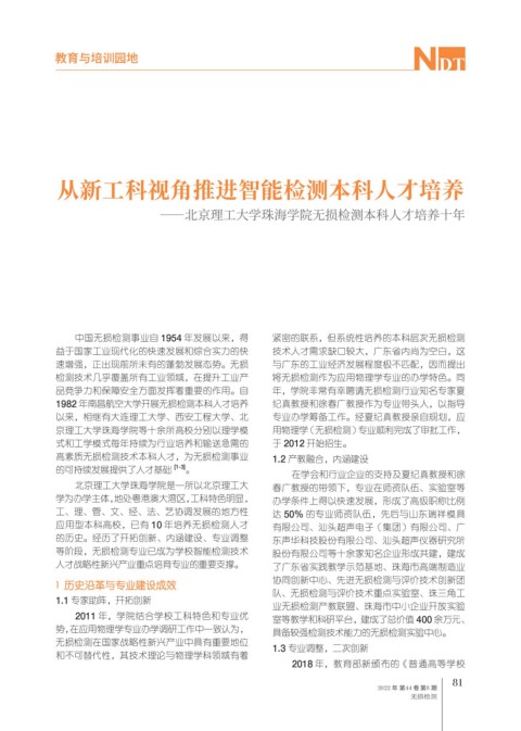高素质无损检测技术本科人才,为无损检测事业 1.2 产教融合,内涵建设