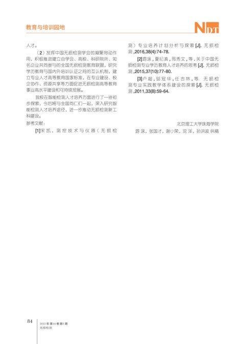 立专业人才高等教育国家标准,在专业建设、校 [3] 卢超 , 邬冠华 , 任吉林 , 等. 无 损 检