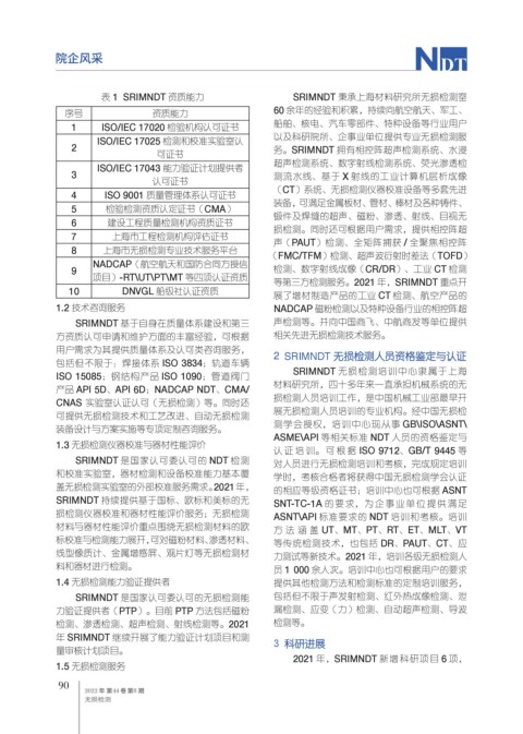 表 1 SRIMNDT 资质能力 SRIMNDT 秉承上海材料研究所无损检测室