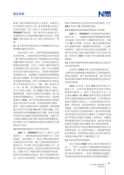2021 年,SRIMNDT 完成了上海市工业强 阵仪器性能、相控阵探头性能以及仪器与探头的