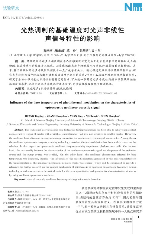 关键词:激光超声; 非线性混频; 微裂纹检测
