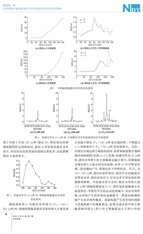 制指数同样达到峰值时, 裂纹 B 所需要的激发功率 0.2 , 其值相对于 P H=120mW 时的值较小。为进一