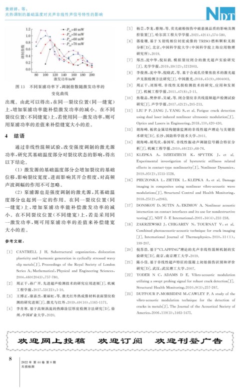 图 13 不同泵浦功率下, 调制指数随激发功率的 [ 9 ] 周正干, 刘 斯 明 . 非 线 性 无 损 检 测 技 术 的 研 究、 应 用 和 发 展