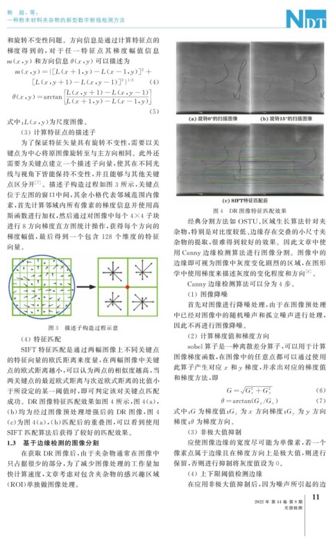 成功。 DR 图像特征匹配效果如图 4 所示, 图 4 ( a ), θ= arctan ( G y G x ) ( 7 )