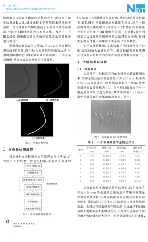 图 5 图像分割效果 表 1 -15° 扫描角度下金属丝尺寸