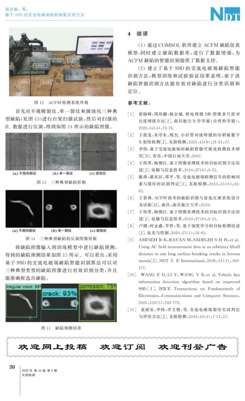 基于 SSD 的交流电磁场缺陷智能识别算法可以对 metals [ J ] .NDT & EInternational , 2008 , 41 ( 3 ): 169-