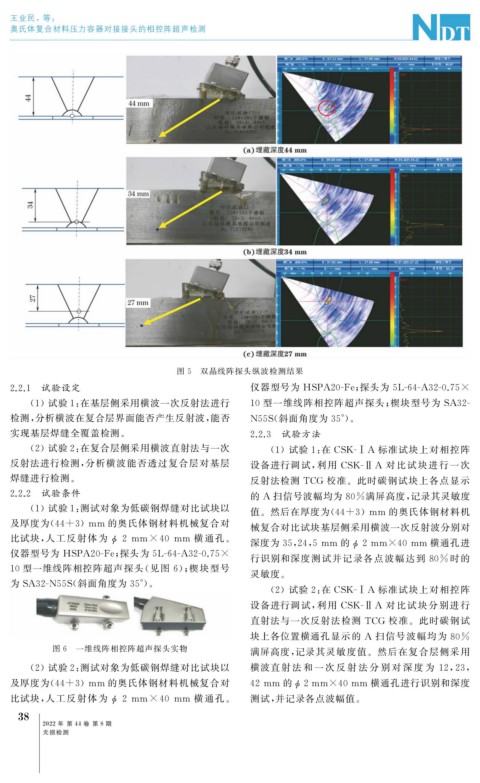 2.2.1 试验设定 仪器型号为 HSPA20-Fe ; 探头为 5L-64-A32-0.75×