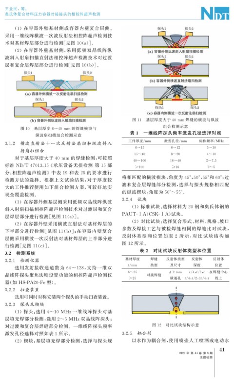 ( 1 )在容器外侧基层侧采用低频双晶线阵纵波 3.2.4 试块