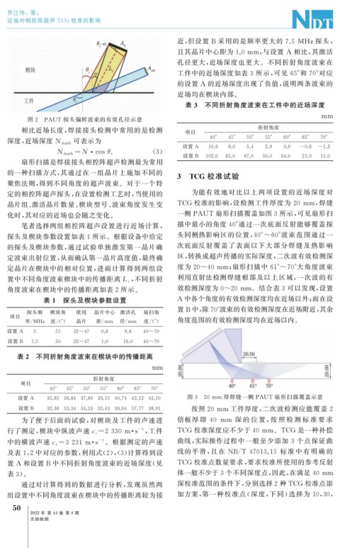 率 / MHz 度 /( ° ) 晶片 距 / mm 径 / mm 度 /( ° ) 角度范围的有效检测深度均在近场以内。