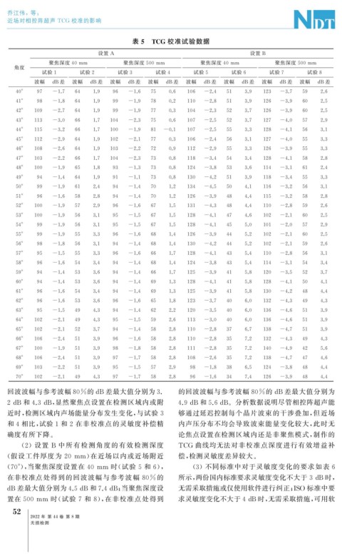 2dB 和 4.3dB , 显然聚焦点设置在检测区域内或附 4.9dB 和5.6dB 。分析数据说明尽管相控阵超声能