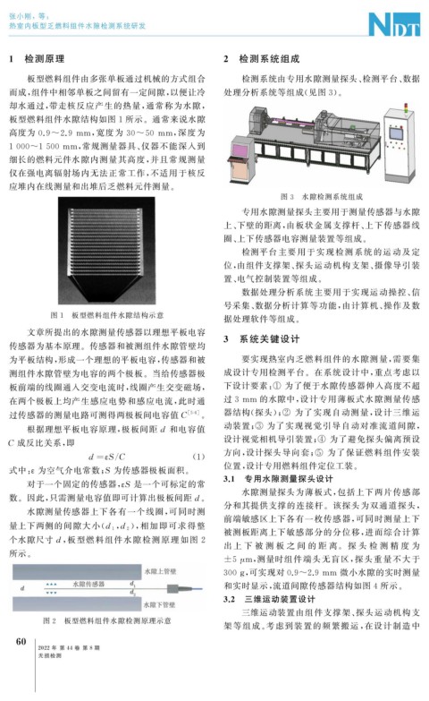 板型燃料组件由多张单板通过机械的方式组合 检测系统由专用水隙测量探头、 检测平台、 数据