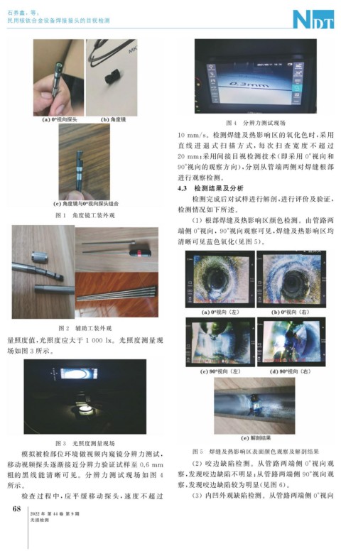 10mm / s 。检测焊缝及热影响区的氧化色时, 采用