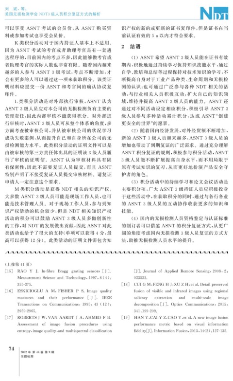 的工作, 对 NDT 的发展做出贡献, 因此 ASNT 对此 的制订者可以借鉴 ASNT 的积分复证方式, 从更广