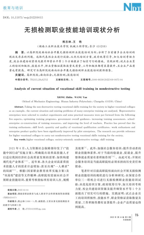 Ke ywords : hi g hervocationalcolle g e ; societ y -oriented ; nondestructivetestin g ; skilltrainin g