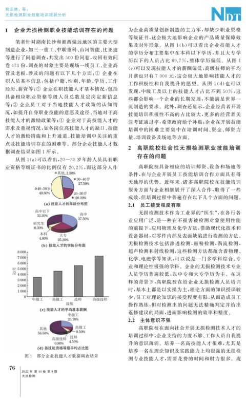 1 企业无损检测职业技能培训存在的问题 为企业高质量创新制造的主力军, 却缺少职业资格
