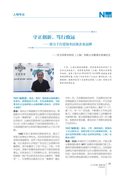 损检测》编辑部采访了艾因蒂克科技(上海)有限公司