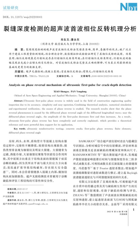 用于建设工程质量检测领域, 结合理论分析、 数值模拟和试验验证研究了其相位反转的成因。结果