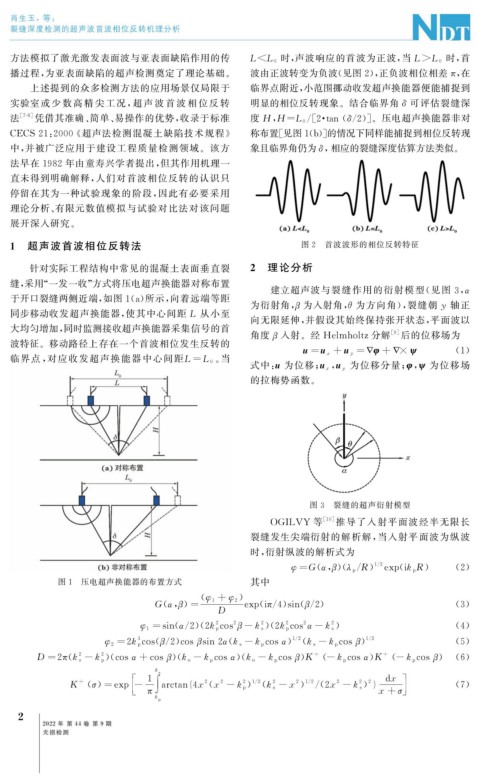 CECS21 : 2000 《 超声法检测混凝土缺陷技术规程》 称布置[ 见图1 ( b )] 的情况下同样能捕捉到相位反转现
