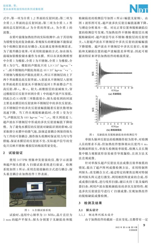 3mm 的超声平探头, 探头分别置于无缺陷处和脱 由于加热组件的截面一直在变化, 且都带有一定