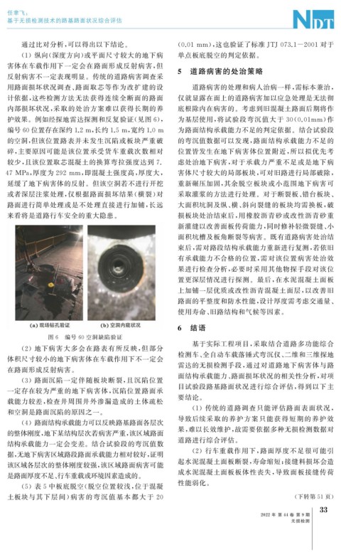较少, 且该位置取芯混凝土的换算弯拉强度达到 7. 虑处治地下病害, 对于承载力严重不足或是地下病