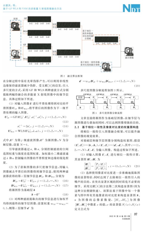 多尺度的方式, 采用 GF 和 WLS 两种滤波方式分别 多尺度图像分解流程如图 3 所示。