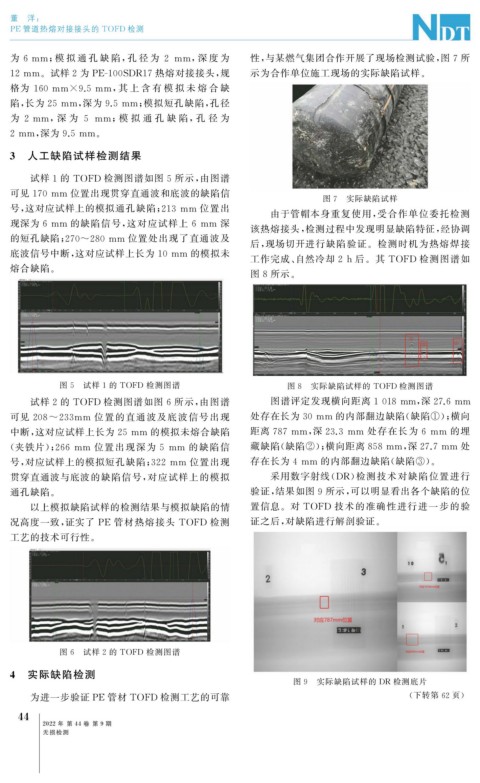 为进一步验证 PE 管材 TOFD 检测工艺的可靠 ( 下转第 62 页)