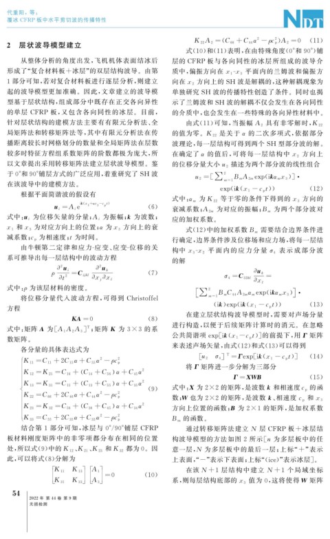 2 层状波导模型建立 K 22 A 2 = C 66 +C 44 α - ρ c p A 2 = 0 ( 11 )