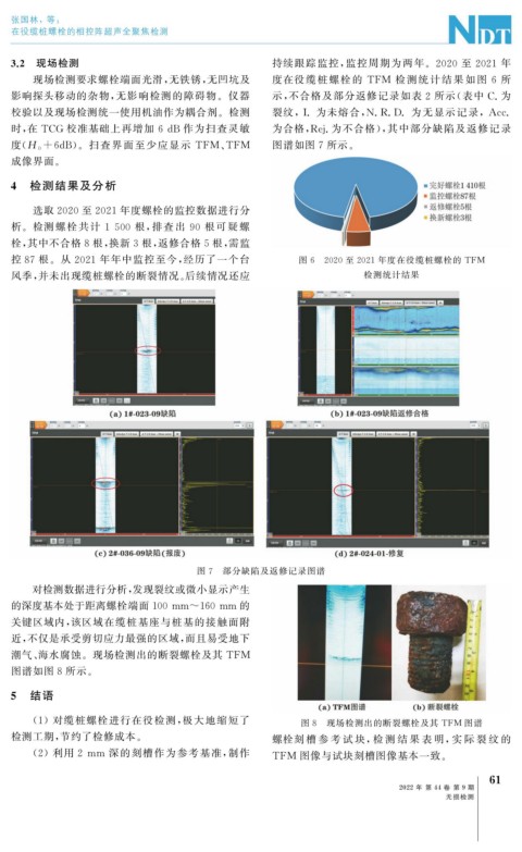 控 87 根。从 2021 年年中监控至今, 经历了一个台 图 6 2020 至 2021 年度在役缆桩螺栓的 TFM