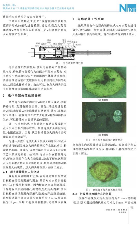 覆药头形 成 的 缩 孔 进 行 检 测, 通 过 改 变 点 火 药 配 选取某型电作动器内装桥丝式电点火药头进行