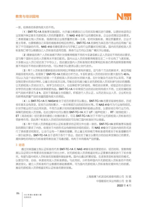 到了不可或缺的作用,NAS 410 的最低要求也与宇航工业的行业质量状况相匹配。国内的无损检测人员