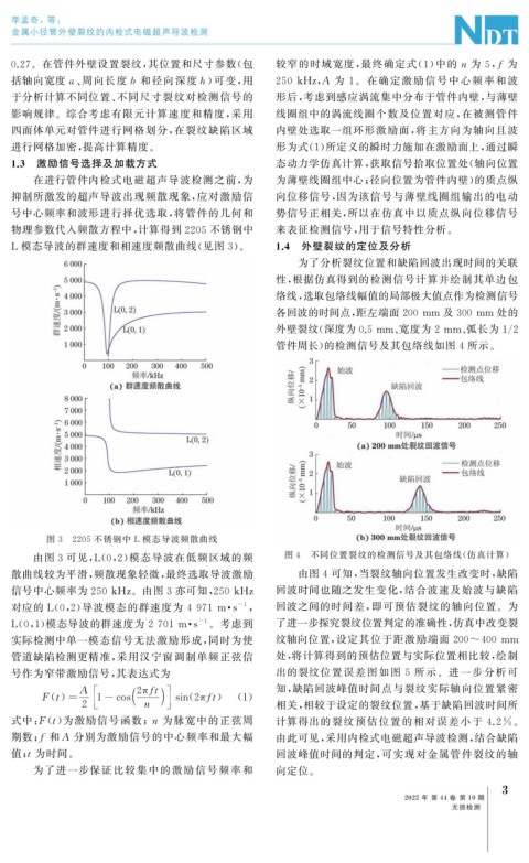 L 模态导波的群速度和相速度频散曲线( 见图 3 )。 1.4 外壁裂纹的定位及分析