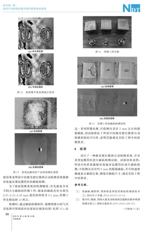 检测时, 通过缺陷检测软件, 观测到微小的气压 检测分析[ J ] . 固体火箭技术, 2017 , 40 ( 2 ): 169-175.