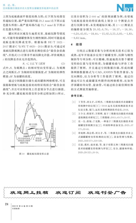 线”, 并按式( 2 ) 计算非平面沉降允许值, 评价观测点 成熟, 近年开始逐步应用于储罐变形、 沉降与刚性