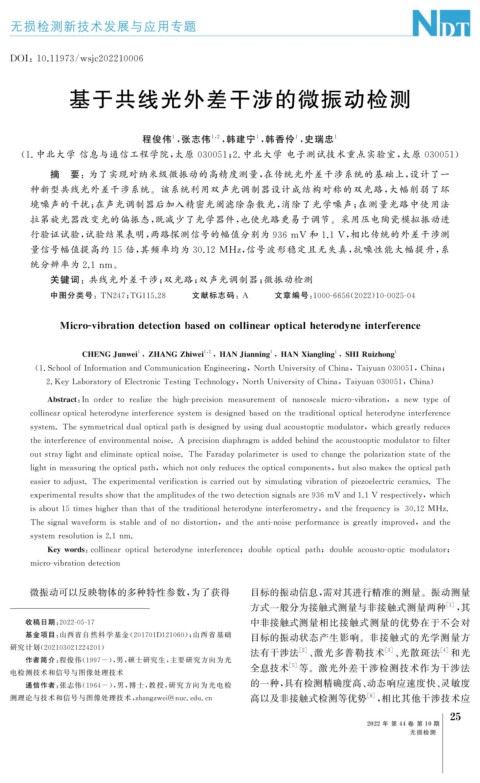 Abstract : Inordertorealizethehi g h- p recision measurementofnanoscale micro-vibration , anew t yp eof